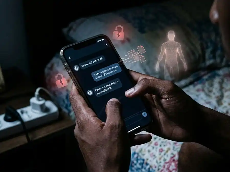 Quando você conversa com um aplicativo de saúde mental, você compartilha coisas muito íntimas. Seus medos, seus traumas, suas crises, seus segredos. Isso é informação extremamente sensível.